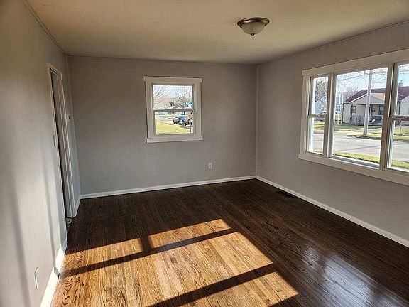 Fully remodeled home on corner lot. All new bathroom and kitchen with LVP flooring, new windows and siding. Includes new gas stove and washer dryer combo. Refrigerator and microwave available. Newer furnace and hot water heater. Beautiful marble backsplash in kitchen. Newly refinished hardwood floors in living room, hallway and bedrooms. Oversized one car garage. Available to move in immediately. Will consider land contract.