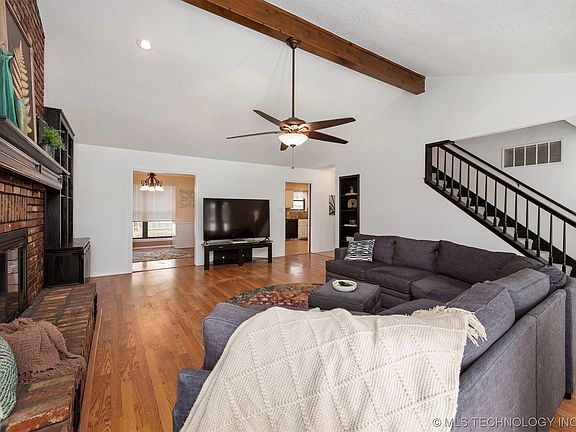 Spacious updated & move in ready home for sale in Broken Arrow! Floorplan features 1 bedroom downstairs & 3 bedrooms upstairs, 3 full baths, 2 car garage, formal dining, brick fireplace living room and lots of storage! Updates include vinyl windows, flooring, granite countertops, remodeled bathrooms, lighting, paint, updated appliances and more. Large corner lot with full privacy fence, storage shed, gutters, covered front porch and balcony deck off upstairs bedroom. You do not want to miss this one! Schedule your showing today.