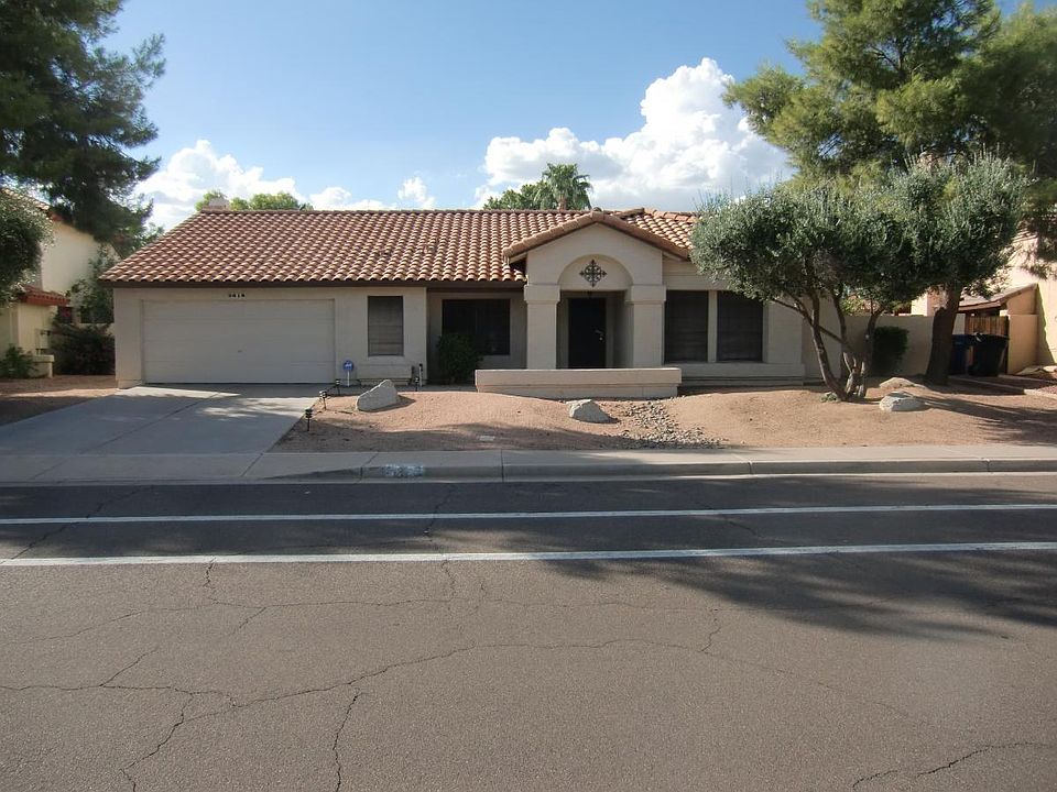 Great spacious single level 4 bedrooms. Close to 101 and Chandler Fashion Center. Lots restaurants, shopping, and easy freeway access. Newer range, hood, and dishwasher. Newer paint. Vaulted ceilings. Wood and tile flooring. No carpet. Master Bathroom has separate tub and shower and double sinks. Kitchen island, Pantry, Stove/Oven, Dishwasher, hook up only for washer and dryer. Come to rent this one today before it is gone. No cats. $75.00 Admin Fee, $75 Renewal fee or for any lease change. No Section 8. $350.00 non refundable pet fee. 12 month lease.