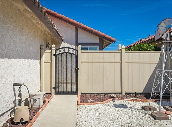 55 Plus Community at it's best.. Approx. 1199 Sq Ft. Two bedrooms, two Baths, Additional Den / Office of this turn key home has been upgraded including, newer AC unit, newly painted interior,Wood Laminate flooring accented by upgraded carpet in bedrooms and livingroom . Granite counter tops in kitchen, newer appliances throughout. Newer vinyl dual pain windows throughout entire home. Auto open and closing sun shade on west facing window in livingroom. Baths have been re done with Quartz vanity tops including dual sinks in master. Front gate into entryway has custom made Gate made with high grade steel for the upmost in security. newer vinyl fencing surrounding entire front and rear yard areas.Ceiling fans in all bedrooms , livingroom and den. Flooring in both baths is of quality tile flooring. this home has been cared for beyond belief quality pride of ownership is evident throughout entire home.