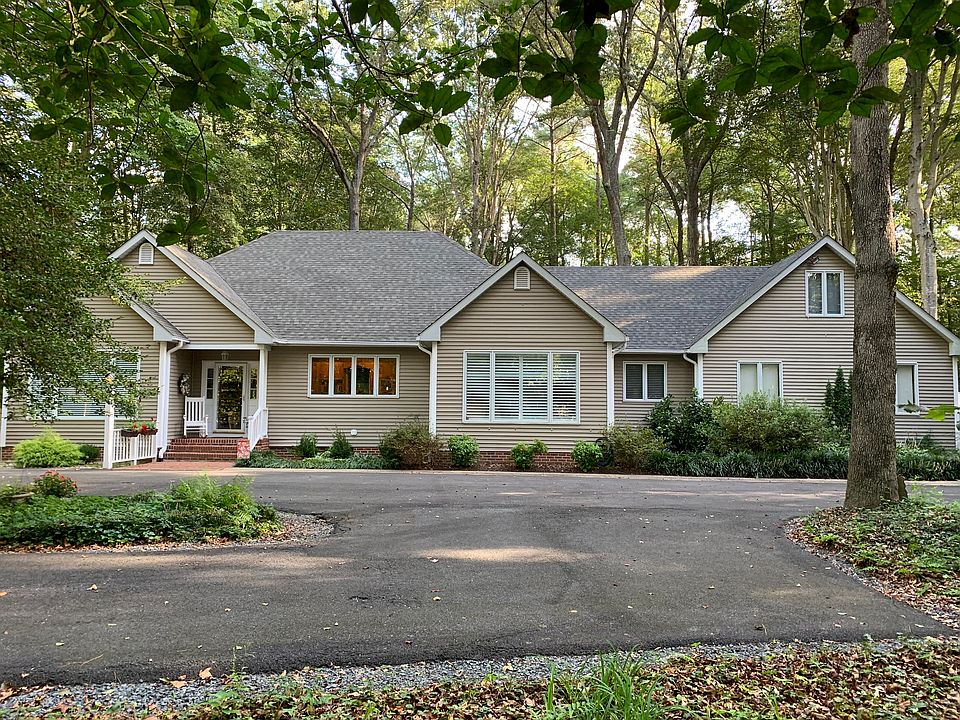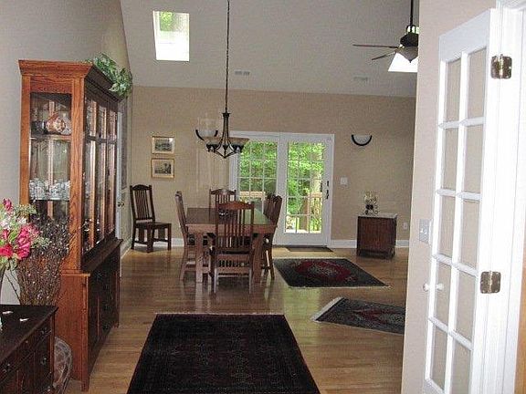 Beautiful home on 2.75 acres in High Banks neighborhood. This 3 bedroom, 3 full bath home has a wonderful open floor plan. Features include hardwood floors throughout, deck off the master bedroom and dining room, 3-season room, office, cathedral ceilings, skylights with pull-down blinds, built-ins in living and family rooms, gas fireplace, Silestone counters and pull-out shelves in cabinets in kitchen with breakfast bar, which opens into family room. 2 car garage with the 3rd bedroom/full bath and unbelievable storage area over garage. Heated tile in master bath. In-ground sprinklers, Invisible Fence, gutter Leaf Guard and storage shed. New roof 10/2019 and HVAC 10/2017.