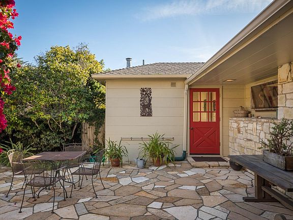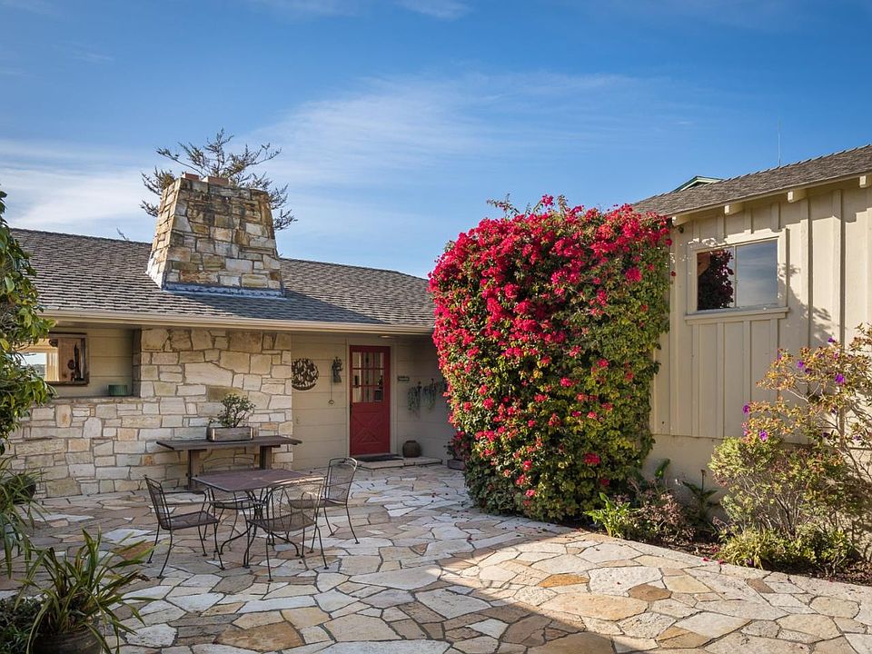 BUILT IN THE FORTIES BY THE PRESENT FAMILY, this charming ocean view Carmel home exudes old-world quality with a sense of place. From the Carmel stone fireplace and patios, random width oak floors, paneled walls and open beam ceiling, to the village views over rooftops to the sea. Called Hale Kai, Home-by-the-Sea, has a comfortable 2-Bedroom main house with large windows where most rooms boast period details and a separate expansive unit with brick fireplace and full kitchen. Private and completely fenced, framed by an array of greenery, with spacious front and back yards on an oversized sunny 6,800sf lot. Close to Carmel Beach, Ocean Avenue and Mission Ranch.