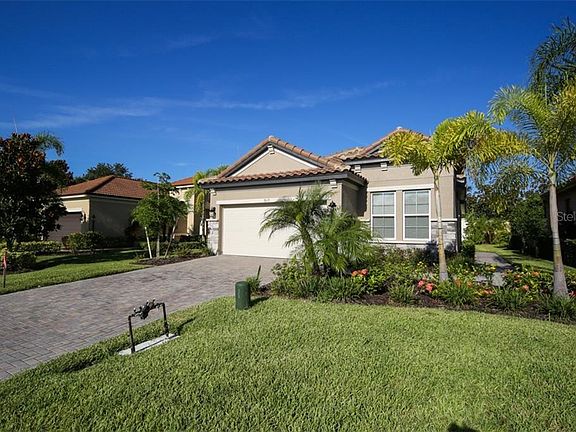 WELCOME HOME TO THIS FLORIDA TROPICAL BEAUTY IN THE MAINTENANCE FREE GATED COMMUNITY OF BOUGAINVILLEA -This Tuscan, Ainsley Model Built in 2019 Located in the Stunning Bougainvillea Place. This Mediterranean Style home features; 3 bedroom, 2 Baths, 2 Car Garage. This Split Plan Model is unique, it reflects quiet elegance and modern design with Tile Roof, Paver driveway, Paver walkway, Paver Screen Lanai, and full landscape package. As you step into the entry foyer, you see beautiful a beautiful open floor plan with Tray ceilings to accent the large Living Room with Built in Entertainment Center, beautiful Ceramic plank tiles throughout the main home and wet areas and carpet in the bedrooms; beautiful spacious Dining Room, Gorgeous Kitchen with Beautiful White granite Counter tops, 42" upper cabinets, Stainless Steel Appliances, Beautiful Island with sink, The Master Suite Features: Beautiful Tray Ceiling, Walk in master closet and double vanity, beautiful Tiled shower with Seamless Glass Doors, 2 additional Spaced out Bedrooms, Large Foyer Entry way, Separate Laundry Room, Spacious 2 car Garage with Storage Space, Energy efficient upgrades and low e windows. The community offers a gated entrance and fabulous pool and fitness center with clubhouse. Situated adjacent to the Ellenton Outlet Mall, restaurants, brand new Costco and soon to be Super Target, one exit south. Easy access to I-75, I275 Major Highways, Hospitals, Airports and travel to our area's best White Sandy Beaches, Downtown Sarasota, Bradenton/St Pete, and Just minutes away from the World Best Known Mote Marine Aquarium State of the Art facility that provides a unique experience for all visitors. Come see your new home today.