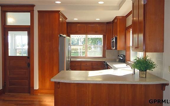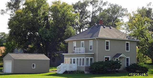 Beautifully updated 1901 farmhouse on 2.24 acres, with close access to Omaha. Newly added 1500 sq foot barn/workshop in addition to smaller single-car garage (280 sq feet). 3 bedrooms and 2 baths upstairs. Master includes two walk-in closets, and attached master bath. One full bath on main floor plus main floor laundry. All hardwood floors. Hooked up to county water and separate propane tank. Stainless steel appliances and hard surface countertops.