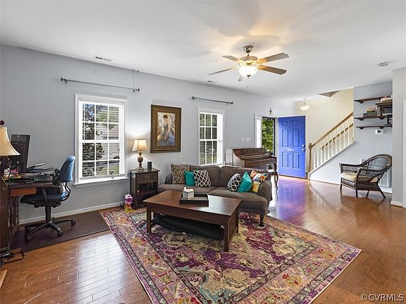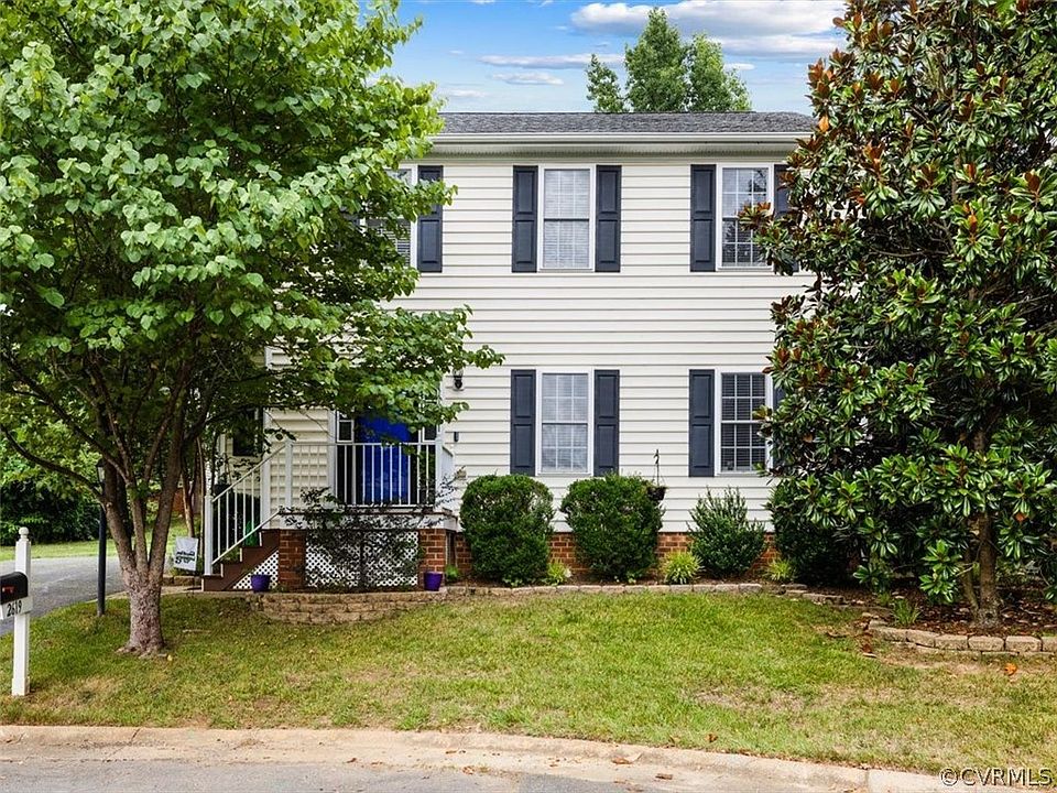 Welcome to this move-in ready 3-bedroom, 2 1/2 bathroom home on a park-like lot in Winchester Green in Nuckols Farm Elementary/Pocahontas Middle/Godwin High district! The open concept 1st floor is freshly painted, has hardwood floors throughout, 9 foot ceilings, propane gas fireplace, stainless steel refrigerator & dishwasher, convenient laundry, half-bath and great natural light! Upstairs are three bedrooms, all w/ wall-to-wall carpet, two full baths with tubs/showers and pulldown attic floored for storage. Owners' Suite has walk-in closet and private ensuite bath w/ double vanity! Exterior has low-maintenance vinyl siding, full irrigation, two-tiered deck, double-hung vinyl windows w/tilt feature, and attached shed for additional storage! Heat Pump new in 2022! The neighborhood HOA provides bi-weekly backdoor trash pick-up, lawn maintenance, snow removal and pond access! The Wilde Lake association provides access to the lake for boating and fishing with an option to join the community pool for an additional fee! This excellent location near Wilde Lake is just minutes from Short Pump shopping and restaurants! This well-maintained, low maintenance home is ready for its new owner!