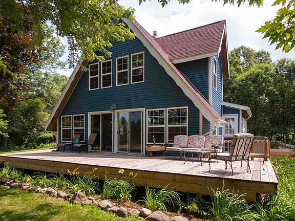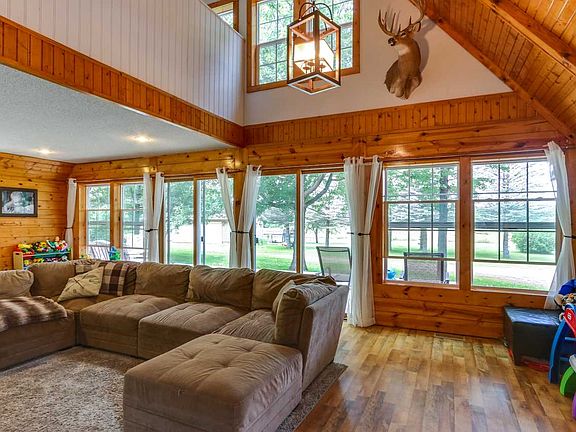 Breathtaking country estate situated on a 9.58 acre parcel with ultimate privacy. Located a short distance from town, this 4 bedroom, 2 bath Open Two Story Loft provides both a classic and modern feel. The exterior features include a fenced in backyard, large 2 stall attached garage, an additional 3 stall detached garage/outbuilding with concrete floor and a massive newly updated front deck. Enter through two large patio doors complete with a entire wall of west facing windows.An amazing great room provides plenty of space for gathering with knotty pine walls and a field stone surround fireplace. The main level boasts two bedrooms, a completely updated bathroom with dual sinks, large mudroom and main floor laundry. Second floor contains 2 more bedrooms, a completely updated bathroom with a barn door and a large loft/5th bedroom overlooking great room. Within the past year, the seller represents the following updates: freshly painted throughout, new light fixtures, both bathrooms completely updated and a new well pump. Previous owner represented the following repairs within the last 4 years: exterior insulated with new vinyl siding, all new vinyl windows, two new front patio doors, fenced in the backyard, new front deck and two new propane tanks. House roof shingles where replaced in 2013; water heater, fiber optic/internet and wired for a generator all in 2011; new furnace, new septic system with drain-field and radon mitigation system all in 2008. Everything is complete and ready for you to enjoy country living at its finest!!