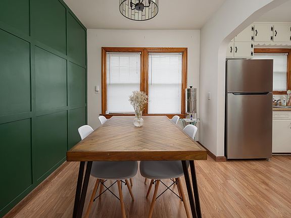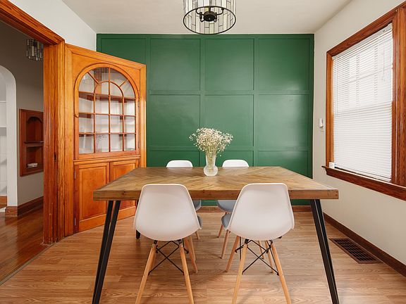 Welcome to this charming 3-bedroom, 1-bath 1.5 story bungalow is an absolute gem, radiating character and special touches at every turn. Upon entering, be captivated by the original hardwood flooring gracing the majority of the main level. The dining room features a distinctive built-in and a captivating batten board accent wall, setting the tone for the home’s unique style. In the well-appointed kitchen, pristine white cabinets and stainless-steel appliances create an inviting space. The delightful features don’t end there – picture perfect barrel entryways, elegant glass doorknobs, and original built-ins infuse this home with unparalleled charm. Venture upstairs to discover generously sized primary bedrooms offering comfort and space. A waterproofed basement ensures peace of mind, while the decent-sized backyard invites you to unwind and create lasting memories. Don’t miss the chance to make this enchanting abode your own! Measurements and sizes approximate. Buyer and or buyer agent to verify all information.