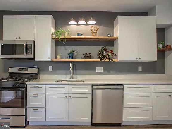 Seller will give Buyers 3% Seller Assist. Move in ready 4 bedroom 2 bath in Camp Hill Borough. One block from high school. Large inviting front porch, beautiful kitchen with tall upper cabinets and open shelving, gorgeous quartz countertops. New windows, new flooring throughout, updated bathrooms, 9 ft ceilings on first floor. Off street parking for 3 cars. Large shed, rear upstairs balcony, gas heat. Central air conditioning can be added with existing duct work.