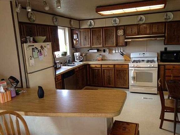Great little starter place. Bring your animals. Updated siding, windows, carpeting, etc. Detached shop needs work. 2 refrigerators, washer & dryer stay. 2 bedrooms, possibly 3.