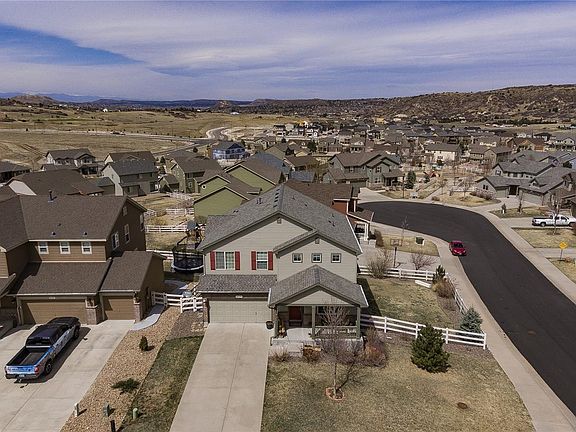 Price Reduction, best deal in Crystal Valley Ranch!!! Beautiful open layout 2-story with a walk-out basement, 3 bedrooms and a loft upstairs! This home sits on a big corner lot as well as a cul-de-sac in the desirable Crystal Valley Ranch community. It boasts almost 2300 finished sq feet above ground with another 913 sq feet unfinished in the basement with a rough-in. It has newer exterior paint, brand new interior paint, fresh carpet, hardwood floors, ADT system, newer granite countertops, and an oversided deep 2 car garage. It is completely fenced in for any pets, has a full sprinkler system, 50 gal water heater, SS Refrigerator, microwave, dishwasher, and oven. The laundry room is conveniently located upstairs and the washer and dryer stay with the home. Move-in ready and vacant so seller can accomodate a quick close!