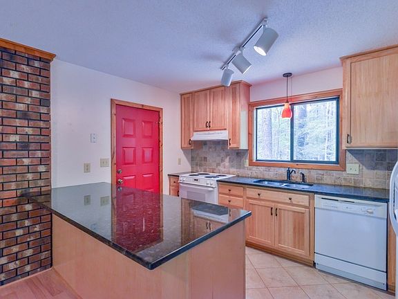 Really sweet little home in The Trails w/a huge garage, new paint & laminate wood floors~Remodeled kitchen w/maple cabinets & tiled backsplash, granite countertops & tiled flooring~A new HVAC system including ducts & digital thermostat~The livingroom has a wood burning fireplace~Clean & dry crawlspace w/a new vapor barrier & new insulation~Check out the volume ceilings (no asbestos) & brick mass interior wall~There is nothing else like this in the neighborhood~30 year shingles went on in '07 & H2O in '10