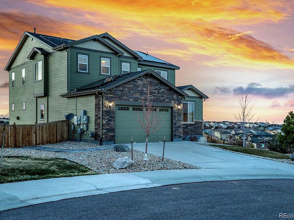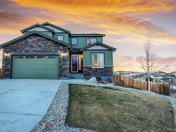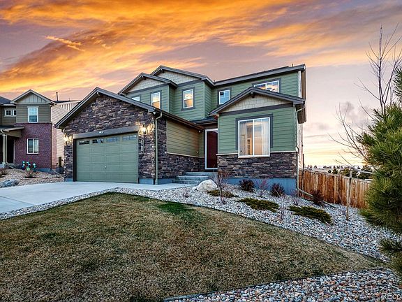 Welcome yourself home to this stunning, one of a kind, fully upgraded home resting peacefully upon a hilltop at the end of a cul-de-sac in Castle Oaks at Terrain. With only one neighbor you will enjoy your private sanctuary surrounded by views in just about all directions! When it comes to trucks and toys, this house has space for it all with an insulated 3 CAR TANDEM GARAGE with a south facing driveway!! This was a BUILDER PREMIUM LOT located on the hill above the rest of the neighborhood. Professionally finished walkout basement opens to large brick patio perfect for entertaining. Come back inside to your personal bar complete with a full size refrigerator and sink. The yard has been professionally landscaped and maintained and sits on just over a quarter acre and comes complete with a sprinkler system for easy care. The kitchen wraps around a fantastic center island and opens into the spacious living room nestled around its cozy gas fireplace and walks out onto the home's large deck featuring mountain views!! Off the kitchen is a full butler pantry leading to your formal dining room which truly showcases the home's eastern valley views. New upgraded refrigerator and dishwasher round off this decadent kitchen. Next stop is into the sun filled dedicated office with glass french doors that screams work/life balance. The sellers added a second furnace and AC unit as well as a second laundry room located on the 2nd floor complete with a sink, folding station and to make things even better, it passes through to the home's master walk in closet large enough to be called its own room. Jetted bubble soaker tubs have been added in the master bath and in the basement bath. The large, beautifully tiled, master shower with glass surround will bring the spa home to you. Step out onto your own heated floors!!