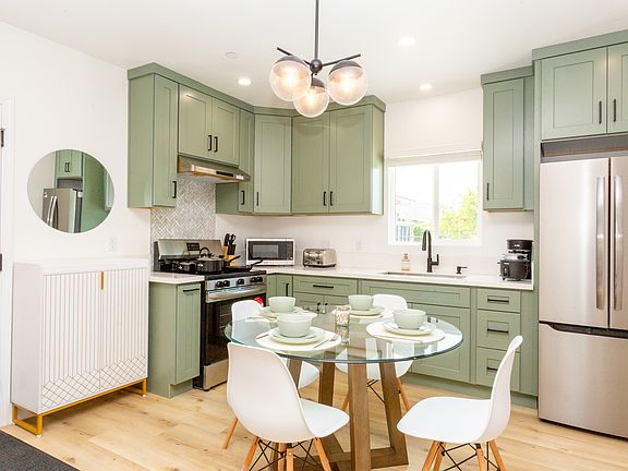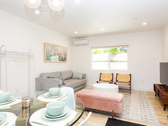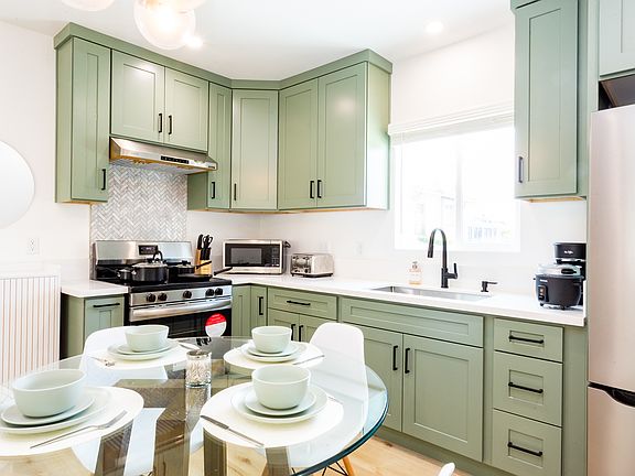 Brand New Fully Furnished Bungalow located in a picture perfect Single Family Residence neighborhood. The first thing you see once you open the front door is the bright and airy open living space. Green cabinets with black kitchen faucet and sleek handles. Brand new eletrical stove and 900 cmf high capacity range hood. Recess lights with 3 way switches. Modern pendant light in the dining area. Barn door hides away the washer and dryer hookups.The guest bathroom has a gorgeous floor tile that goes perfect with the green subway tile. The master bathroom has the same floor tile that goes well with the textured beige wall tile. Green cabinet echos the green theme throughout the entire unit. Double shower heads including a hand hold shower handle in the master bathroom. Modern one piece toilets in both bathrooms. The master bedroom comes with a pair of beautiful drop down lights and 2 windows, plus a walk in closet. Nice flush lights with beautiful Edison lightbulbs in both bedrooms. Efficient and quiet AC in living room and 2 bedrooms. Nice brand quality furniture and applaince through out the house with beautiful paintings all around. 1 designated parking spot. Plenty of street parking. 1-6M $4500 Deposit 4500 Landlords pays All 7-11M $4300 Deposit 4300 Landlord pays All 12+M $3999 Deposit 4000. Tenants pays Electricity and Internet, Landlord pays Water Trash and Gardening Minimum 30 days