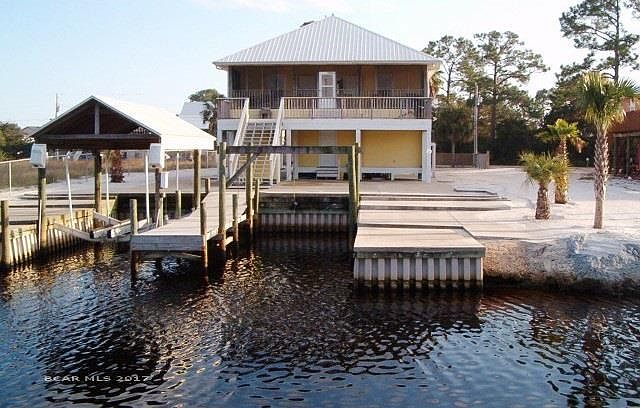 "Boaters Dream" Home in Orange Beach on Canal to Cotton Bayou & Perdido Pass with No Fixed bridges. 2 Boat slips one covered with 7000 lb lift and one 40 ft uncovered. Concrete Bulk Head the width of the property. 3 Bedroom 2.5 Bath, "Move in Ready" Sold Completely Furnished with all Appliances. Sturdy Construction with 10 x 10 pilings and hardi board finish. Screened Porch and large open deck facing the water. Covered Parking and plenty of concrete pads for trailers etc. Finished Downstairs with half bath and 3 rooms of Dry storage for Fishing Gear, tools and equipment. Metal Roof and new A/C for Main level in 9/26/16. Dont miss out on this Great Canal Front home on protected water in Orange Beach. and only 2 miles drive to the Beach.