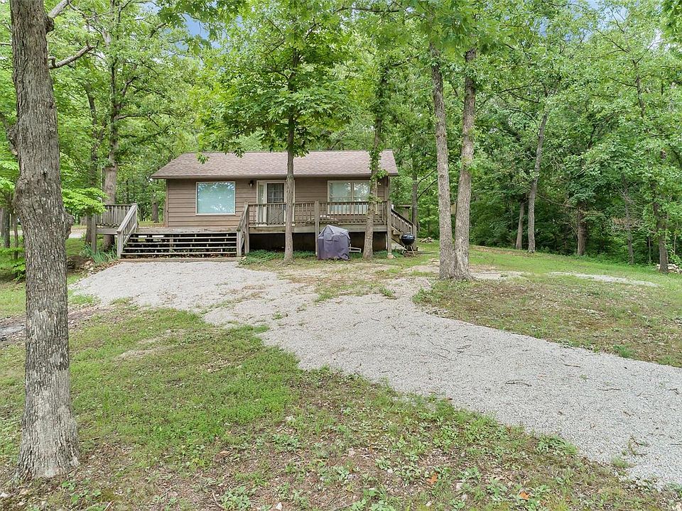 This cozy home offers 2 bedrooms, 1 bath, large deck with an amazing view overlooking the 29 acre lake and the privacy of 2+/- wooded acres. Home is perfect for your weekend getaway or live here full time! Detached 2 car garage with loft area and a 12' x 12' storage shed will help store your toys and tools. Come fall in love with the view and enjoy the country feel of all that this property has to offer, yet only a few miles from town. Refrigerator, electric range/oven, washer, and dryer all stay. New roof in 2016.