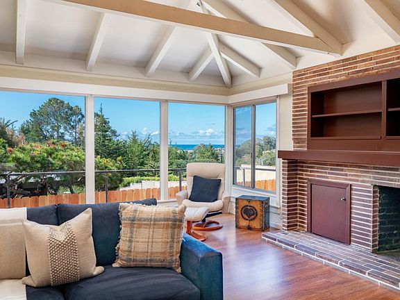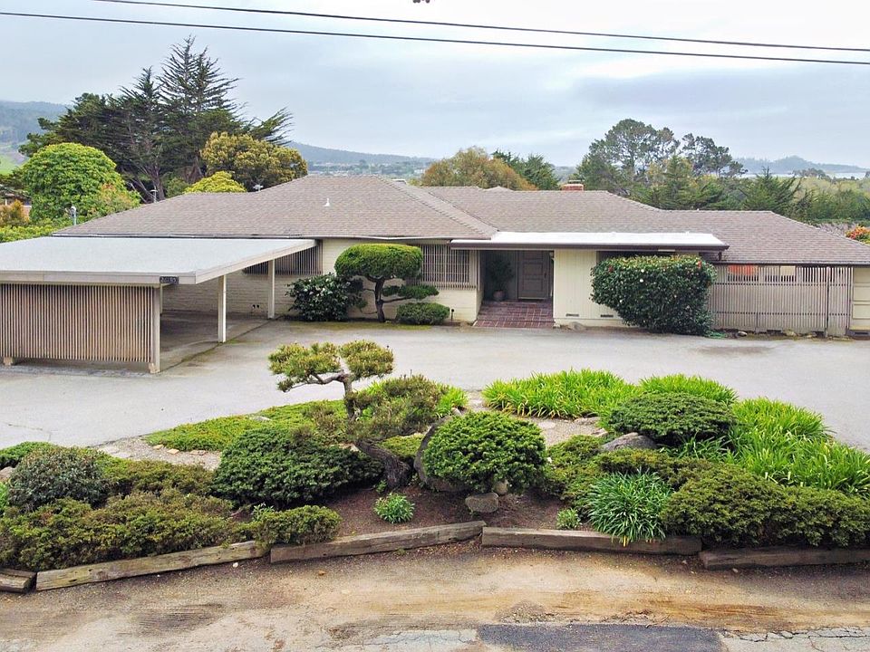 A single level home in a fabulous location with ocean views! Besides the view the large living room showcases open beam ceilings and brick fireplace. Light and bright throughout the home due to the many large windows and skylights. It has been with the same family since the 1940s and through the years has been improved and added onto. The property was divided into two living areas with the main home providing two bedroom suites and the attached guest unit with separate entry provides: living room/kitchen combo and one bedroom and bath. Although separate the two units can easily be connected again. There is also a basement which is not included in the square footage which has been divided and offers a studio with kitchen and bath as well as a separate workshop/storage area. This home has great potential for you to create your dream home in a superb location.