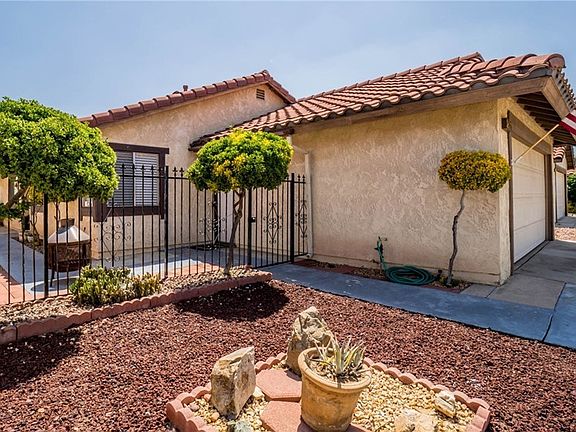 Welcome to Sun City Patio Homes in Menifee, a beautiful 55+ community with a pool, club house and more for your active lifestyle! You will love this open and airy single-story home with 2 bedrooms, a den/possible 3rd bedroom and 2 bathrooms. The inviting gated courtyard entryway is perfect for outdoor furniture and a fire pit. Xeriscape on all sides is attractive and easy on your water bill and maintenance. Enjoy the open floor plan with vaulted ceilings and sliding glass doors to the patio from the living room and master suite. The spacious living room offers a toasty fireplace and plenty of space for large furniture. The kitchen has ample storage, tiled counter tops, a breakfast bar and open dining area. Relax in the master suite with a large ensuite bathroom, mirrored closet doors, long vanity with double sinks and a shower/tub combo with multiple grab bars. Convenient indoor laundry room with cabinet space and direct access to the 2 car attached garage. Enjoy BBQs in the backyard with plenty of space for lounge furniture, a garden, potted plants and more. You will love the club house, pool facilities and close proximity to everything you need in town. Enjoy the new shopping center on Ethanac! Very low association dues of $45/month plus the low maintenance yard will help you save money. Take a close look at this exceptional home today - you deserve to pamper yourself and enjoy life to its fullest!
