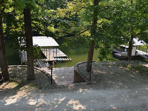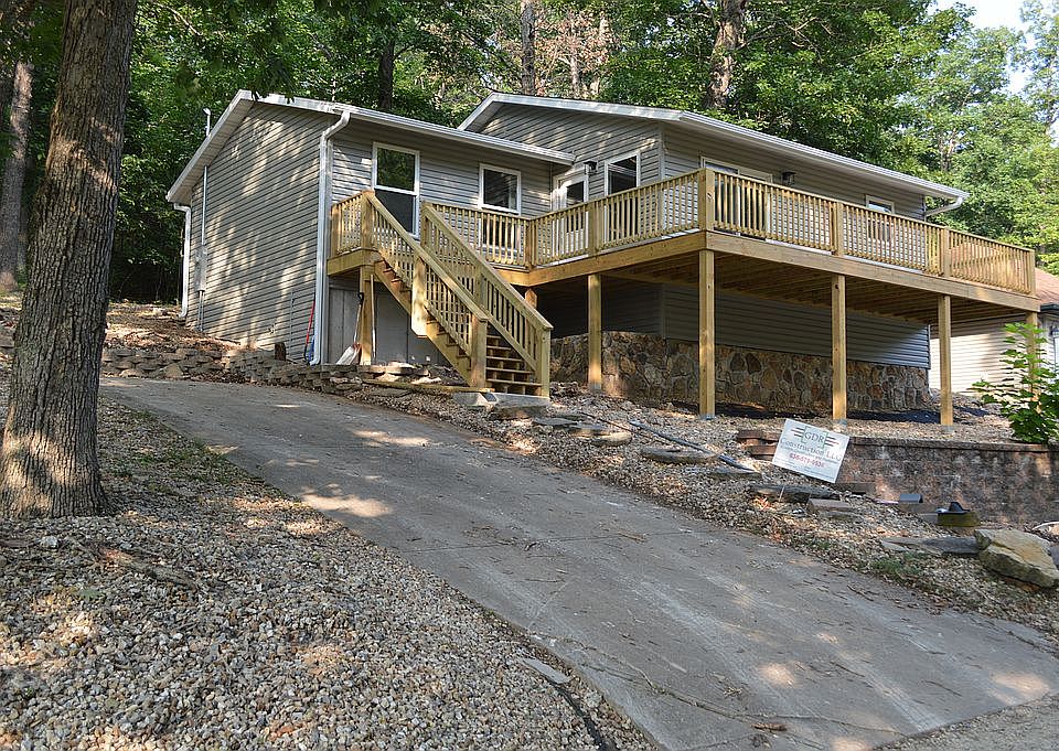 Beautiful LIKE NEW Home in Indian Creek Cove has all your I WANTS! The only thing left from the original home are 2 walls, everything else is BRAND SPANKIN' NEW! Located in a protected cove off of Indian Creek Cove, perfect for swimming, fishing, kayaking or paddle boarding. Included is a concrete dock w/boat slip surrounded by an amazing paver & block wall patio with a built-in fire pit...absolutely where everyone will want to hang out! Plenty of parking, room for 9 cars. Custom built deck surrounds this beautiful 3BR/2BA RANCH Home. Open floor plan w/vaulted living area and sharp electric fireplace; white kitchen cabinets and luxury vinyl plank flooring throughout. Master Bedroom has walk-in closet and large double vanity, plus a custom walk-in tiled shower. Main bathroom delivers striking porcelain tile and vanity. There are 2 additional bedrooms with closets for guests. If you are looking for a SCENIC PLACE at the lake with NO WORK to be done...this is the ONE!!!