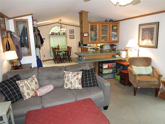 Newer mobile home in small park setting. Large eat in kitchen with lots of cabinets that connects to spacious living room. Master bedroom has 2 closets. Deck and fire pit for outdoor enjoyment. House is set back far from the road.