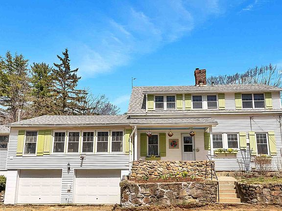 This meticulously upkept 4-bedroom, 3-bathroom Colonial is situated on 4.8 private acres on the quiet outskirts of Jaffrey, NH. This property features a main house and a well-equipped workshop outbuilding, each with freshly redone hardpack driveways and convenient garage access to both buildings. With an attached, separate 1-bedroom, 1-bathroom in-law apartment with its own kitchen, this home offers the potential for a shared family living arrangement, or an opportunity to generate rental income while living in the main part of the house. A tastefully updated kitchen in the main house boasts granite countertops, tiled backsplashes, and handsome stainless-steel appliances. Step through the open-arched doorways into a cozy combined living/dining room, with warm-toned hardwood floors and a Jotul woodstove that offers a wealth of heat during the cold New England winters. Inviting you to step outside is the enclosed porch, which overlooks the beautifully landscaped lawn, perfect for family outings. Upstairs are 3 cozy bedrooms, all of which overlook the mature perennial flower gardens surrounding the house, as well as a beautifully tiled full bathroom. A pellet-stove heated, dedicated workshop awaits you on the other side of a lush green, level lawn, making this property ideal for additional storage capabilities, DIYer projects, or a home-based business shop/office space. Don't miss out on this competitively-priced property. Open houses on Sat 4/20 and Sun 4/21 from 12pm-2pm.