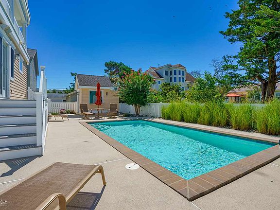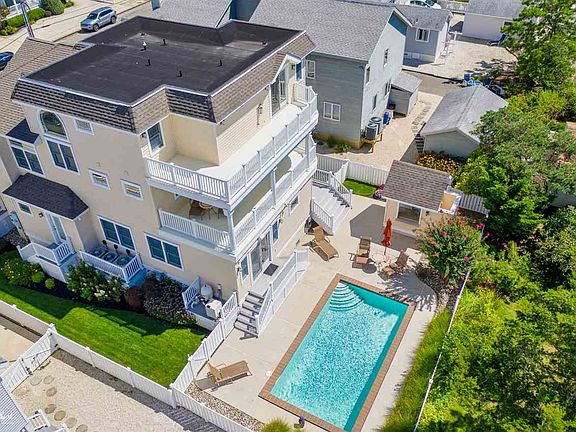 This spectacular property features exceptional living areas complimented by generous areas of outdoor entertaining space to enjoy the beautiful water and sunset views, all accented by the well-manicured landscaped grounds. The lavish pool area with its southern exposure for all day sun features a detached cabana with full sized refrigerator, microwave oven, sink, full cabinetry and roll up door plus outdoor access to a dedicated powder room and outside shower. This expansive home is fully equipped with all of quality appointments you would expect in a property of this caliber; a 4 stop elevator for ease of access to all levels, built in garage, 6 full bedrooms all with access to full baths (3 en suite and with private decks), 2 fireplaces, 2 laundry rooms, 3 zone heating and cooling, Brazilian cherry hardwood floors, granite countertops throughout, soaring cathedral ceilings in living, kitchen and dining area, open decks or sheltered decks on all levels front and back affording exceptional sunset and bay views. Offered fully furnished for your immediate enjoyment and only steps to the very private and exclusive high dune beaches Avalon is famous for! Never a rental and slightly used by the original owner this home is ready for your memory making at the beach. Call today to preview this beauty it has all the "I wants" you could ask for!