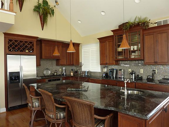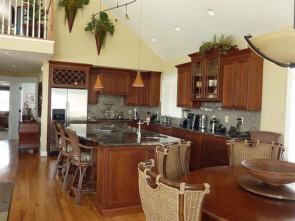 Beautifully Built 3 story home with bay views and located close to the beach. Well maintained 5 bedroom / 6 full baths. First floor has 2 bedrooms, laundry room and den/family room with wet bar that leads out to the in ground pool. Second floor host two additional bedrooms, the living room, dining area and kitchen that includes granite counter tops, stainless appliances and breakfast island. The Master suite sits on the third floor with its own deck. This home is being sold unfurnished except for all the appliances and TV's.