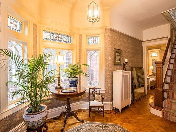 EXQUISITE AND ELEGANT 5BR /4bth 2400sq foot Detached Victorian in Prime Bay Ridge This spectacular and special house is a unique and perfect combination of modern amenities coupled with Pre-War treasures including parquet wood floors, handcrafted and restored woodwork, stained glass windows , trayed ceilings, shutters, high ceilings, moldings and MORE!!! The extra long private driveway and detached garage affords ample parking for at least six cars. The sun drenched parlor level welcomes you with grandeur boasting a gracious living room, formal dining room and sitting room, powder room and completely renovated eat in kitchen featuring high end appliances including Sub zero refrigerator, Miele dishwasher, Rohl Faucets, Enkeboll molding, granite countertop and backsplash features from Artistic Tile. Comfortable living extends from the kitchen to a conservatory-inspired screened porch, where house meets garden. Enjoy relaxed outdoor living and dining, rain or shine. The serene oasis overlooks a very private, rambling garden replete with seasonal flowers, herbs and lavender. The second floor features the master king size bedroom with a full bathroom and two additional large charming bedrooms with ample closet space and tree top views. The third floor features two lovely bedrooms with magnificent Verrazano Bridge views prominent and beautiful throughout the day and evening hours. There is a large bathroom and dressing room adjoining the bedrooms. This unique house evokes the romantic essence of gracious times and old world charm. Call Mary Allison Muccigrosso