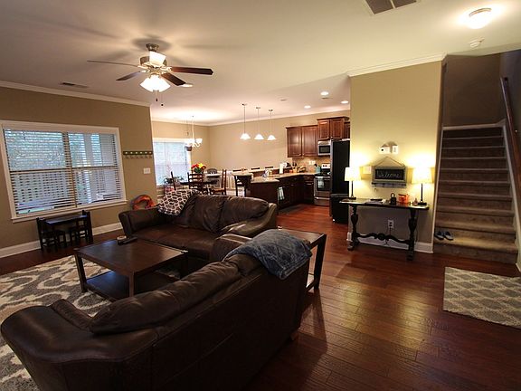 The great starter home sits on the largest lot at end of the cul-de-sac AND backs up to GREENSPACE, 2300SF with a stained fenced yard. The entire downstairs boast hand scraped hardwoods, with lots if windows. The kitchen has beautiful stained cabinets, with granite counter-tops, tiled back splash and under cabinet lighting, with a gracious walk-in pantry. The over sized master suite is 20x23, vaulted ceilings with a sitting area and an en-suite with double adult height vanities, with a garden tub, separate shower, and a toilet room. The closet are lg w/ double shelving perfect for lots of organizing. The secondary bedrooms are spacious with vaulted ceilings they share a large bath with dual vanities. The loft is upstairs, perfect for a home office, and TV gaming space, work out area, or can be used as a play area. The laundry is among all bedrooms, and has cabinets with a hanging rack. 2 linen closets. Double garage, with decorative curbing, and cedars columns- thermal roofing in attic.
