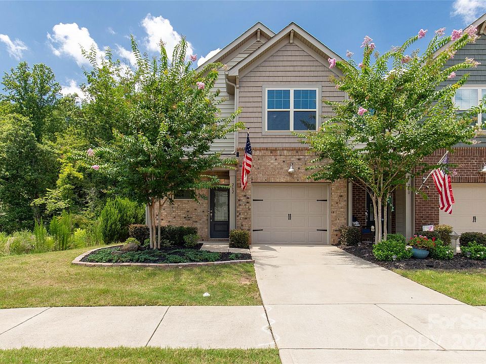 This gorgeous end-unit townhome in the desirable Waterside at The Catawba community has lots of wow! The open floor plan features faux wood laminate plank flooring on the main level and custom paneling in the entry hall. The kitchen boasts stainless steel appliances, a gas range, and granite countertops. The living room, located at the rear of the home, includes a custom shiplap fireplace with a reclaimed wood mantle.