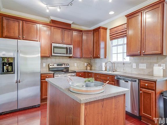 Brick front 2 car garage townhome w/ tons of space. Lives like a single family home w/ all the maintenance free benefits of a townhome. Enormous family room w/ gas FP. Ample sized kitchen w/ center island, Corian tops, & SS appliances open to sunny dining area. Huge master w/ his/her WIC's, & lovely en-suite w/ double vanity, soaking tub, & sep. shower. Awesome bonus room on main level. Covered deck AND covered patio w/ wooded views of mature tree line & RARE large yard space. Access to nhood amenities!