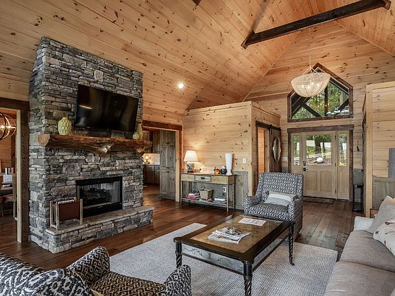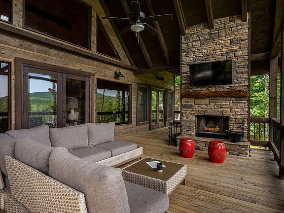 Nestled in the heart of the Aska Adventure area and super convenient to both Lake Blue Ridge and the Toccoa River, this well-appointed rustic cabin offers a stunning long-range mountain view from both levels!! Featuring an open floor plan w/stacked stone dual-room fireplace for both dining and living areas, fully equipped gourmet kitchen, double owner's suites w/private baths, comfortable guest rooms and finished terrace level complete w/wet bar & cozy fireplace, multiple outdoor living spaces w/main level outdoor fireplace showcasing the view and detached garage for parking and storage. With it's proximity to the lake and river, outdoor enthusiasts will find themselves in a haven of activities like fishing, kayaking, boating and swimming.....with the USFS nearby and TOCCOA RIVER ACCESS, you can choose your hike or mountain bike routes for days to come or float the river!!!