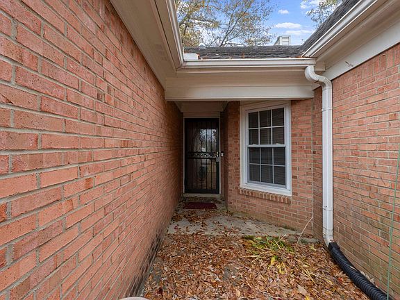 Step into this inviting 3-bed, 2-bath charmer featuring an impressively spacious living room with soaring vaulted ceilings and a tall brick fireplace that absolutely steals the show. The kitchen offers generous storage with rich wood cabinetry and essential appliances, while the wood-trimmed hallway adds warmth and character. The primary suite feels like a retreat with a large jacuzzi tub as its centerpiece, plus a private water closet, double-sink vanity, and separate shower. Outside, enjoy a roomy backyard with a patio, wood fencing, and a storage building—perfect for weekend projects or playtime. Cozy carpeted bedrooms round out this comfortable, functional home.