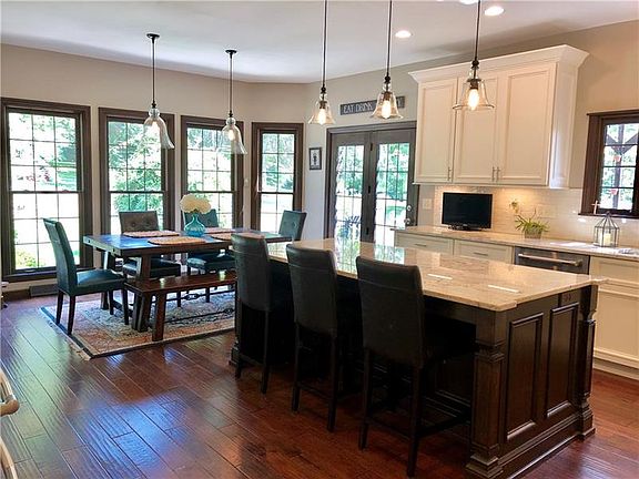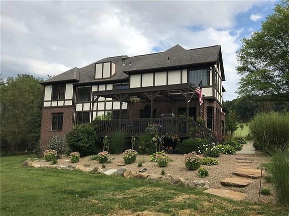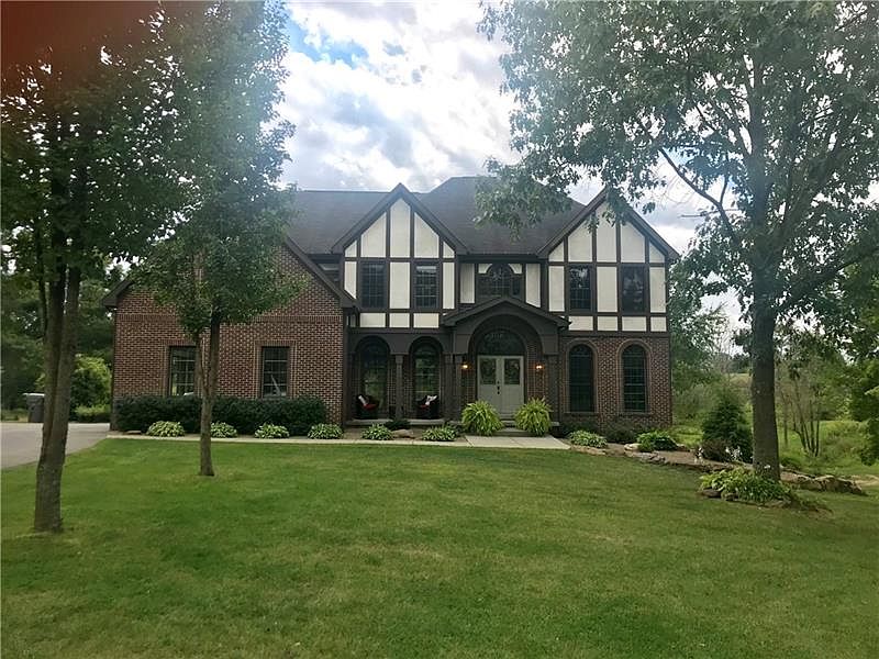 Gorgeous 4,000 sq ft custom brick home on private 3.43 acres with large storage barn. Just minutes to Seneca Valley campus, Zelienople/Harmony & I-79 makes commute easy! This 4 bedroom 4.5 bath home has tons of space & beautiful views. The 1st floor has hand scraped wood floors, oversized windows & high ceilings. Renovated eat-in kitchen features custom cabinets, large center island, granite counter tops, pantry, double ovens & gas cook top. The 2 story family room features a gas fireplace & tons of natural light. 1st floor office has built in bookcase. Use front or back staircase to access 2nd floor. Master suite features large walk-in closet, double sink vanity, and large shower & tub. Bedroom 2 features its own private bath. Bedrooms 3 & 4 share Jack & Jill bathroom. 2nd floor laundry room. Finished basement features full bath, area plumbed for wet bar & room to play & entertain. Basement also offers a 3rd garage & workshop. Beautifully landscaped property. Pergola covered deck.