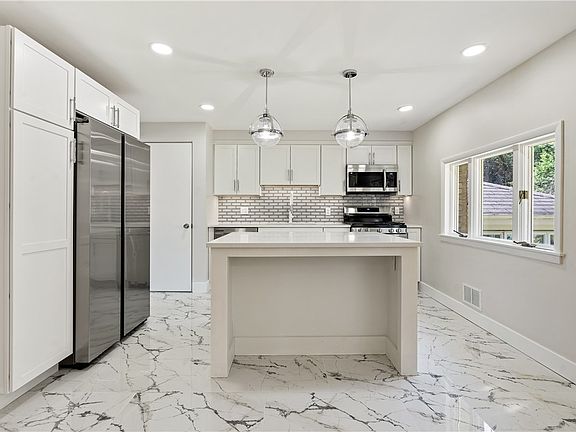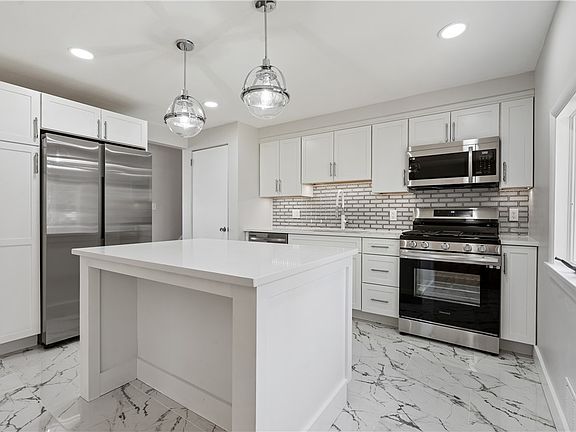 ALL YOU NEED TO DO IS PACK! This split level 3 bd 1.5 bth home located on a quiet cul de sac in West Mifflin is an entertainer's dream. As you walk through the main entryway, you'll be greeted by sparkling marble tile floors that leads to a small half bth, a moderately sized room with double entry, perfect for a guest room or office. Just steps from the entryway is the game room, featuring a white stone accent wall, wine bar, and glass sliding doors that lead through a sunroom with access to the yard and 30f in ground pool. The 2nd level is bright and airy from all the natural light beaming through the bay windows, featuring original hardwood flooring, formal dining area, with white quartz countertops, stunning grey glass backsplash, and white marble flooring as well. 3rd level has a full bath and 3 spacious bdrms all with ample closet space. All new stainless steel appliances, 2 car garage. Minutes from shopping, eateries, and entertainment such as Kennywood and Westwood Golf Club.