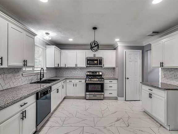 Beautiful home, Renovated recently, June-Aug 2020 on Cul-De-Sac, Freshly painted, 5 Bedrooms, 2 full bath & 1 half bath. Inviting 2 story, entry looks up to a beautiful chandelier & decorative front door, well lit with plenty of natural light, fan in each room, LED lights. Huge family room with fire place, spacious kitchen, granite counter tops, connected to formal dining, breakfast area over looking family's Great room (living room), sliding glass doors leading to extended covered patio with 3 fans, a lovely outdoor kitchen for grilling enjoyment. Luxurious Primary bedroom on 2nd floor with step-up sleeping area plus flex seating area to relax/read/work from home. Primary En suite bath has double sinks, separate tub & shower, his and her closet. 3 secondary bedrooms on 2nd floor and an additional 5th bedroom/office on 1st floor all offer flexibility of purpose. This great family home just minutes from downtown, Houston Medical center, well connected to highways awaits a new owner.