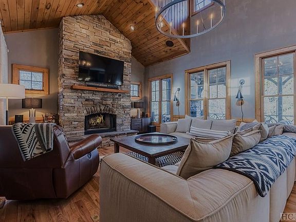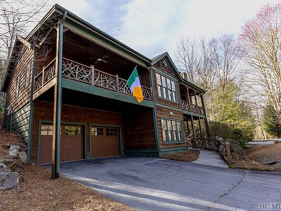 Beautiful custom home located on the Lake Glenville side of Trillium Links and Lake Club! This spacious mountain home features two generous living areas, four separate covered porches, two bedrooms plus an additional bonus room (with closet) for your overflow guests, 3.5 baths, and an attached two-car garage. There is plenty of room for your family and friends! The main level of the home offers a large great room with cathedral ceilings and a stacked stone wood burning fireplace, a fully appointed kitchen with stainless steel appliances, a spacious dining area leading onto the cozy covered porch with an additional wood burning fireplace, a powder room bath, large laundry room, and an oversized primary bedroom suite complete with its own fireplace, private balcony, walk-in closet, and en suite bath. The lower level of the home offers a second living room, a guest bedroom with en suite bath, a bonus room with closet for additional guests, a third full bath, a large covered porch, and an attached two-car garage. There is ample storage space and parking for multiple vehicles. Membership into Trillium Links and Lake Club is optional and includes additional amenities such as deeded lake access, multiple dining options, golf, tennis/pickleball, pool, fitness center, dog park, croquet, hiking trails and more!