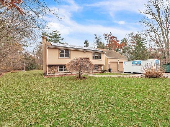Do not miss this beautiful and immaculately maintained home located on an over 1&1/3 acres nicely landscaped yard. Well-appointed wood cabinet and granite kitchen with lots of cabinet space, center island and nice tiled floor, Gleaming Hardwood floors in spacious dining room Bright comfy family Roon/living room overlook beautiful private yard. Both upstairs bedrooms are both good size, and the 3rd bedroom in the lower level is very spacious and has a beautiful FP. Lower-level Great room is over 350 square feet a has a beautiful wood bar with a granite top that seat 6. Makes this a GREAT home for friends and family entertainment. The oversized detached 2 garage has a full second floor that can be used for so many things. There is lots of great storge spaces in the basement as well as in the garage. Has an invisible pet fence that will stay. **Energy produced from solar panels cover the cost of rental and all electricity.