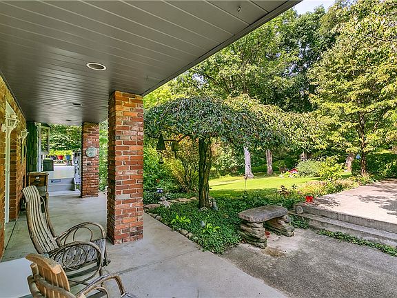 Welcome to your private sanctuary, nestled on 2 serene acres! Blending tranquility + comfort, this charming home is the ideal retreat for relaxing and entertaining, with wrap around front porch to deck w/built in gazebo & covered sitting areas and beautiful grounds & gardens. Discover a beautifully appointed kitchen w/ cherry up-lit cabinets, undermount lighting, wall to wall Cortex vinyl wood flooring, Newer Whirlpool dishwasher & fridge, Jennair Electric stove w/built in draft, large island, vaulted wood ceiling, stone accent wall, and an open loft above the dining area w/cozy corner fireplace. Two living/sunrooms with walls of windows offer gorgeous views from both floors. Convenient laundry (plumbed for 3rd bath), den w/separate entry, 1/2 bath, and attached garage on the main floor. Gorgeous staircase to upper loft, fam/greatroom w/vaulted ceiling, spa-like full bath, primary BR w/WIC, BR #2 w/wall of closets, and sunroom/3rd BR. An exceptional combination of privacy & farm chic.