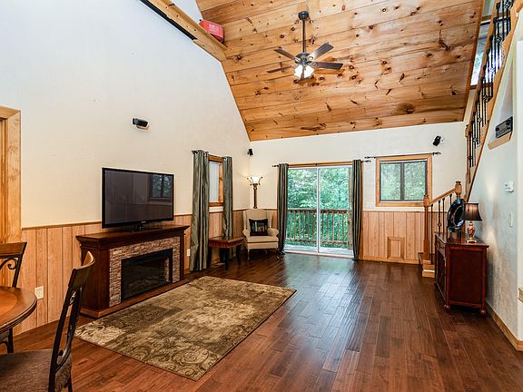 Located in the Yogi Bear Jellystone Park, enjoy the best of Table Rock lakeside living and still just be a short drive from Branson's Entertainment District. Enjoy the lake views from one of your two decks. The main deck is a 15x21 deck perfect for entertaining. Cathedral ceilings and hardwoods welcome you into this unique home with open floor plan. The master suite features a private bath and a walk out veranda with a panoramic view of Table Rock Lake and the surrounding hills. The home is built on a foundation and allows for 2 water-crafts on trailers to be stored underneath. There's also tons of additional storage. L Resort amenities include pool, tennis & basketball courts, playgrounds, and clubhouse. A boat launch is close by to enjoy the best of Table Rock Lake.