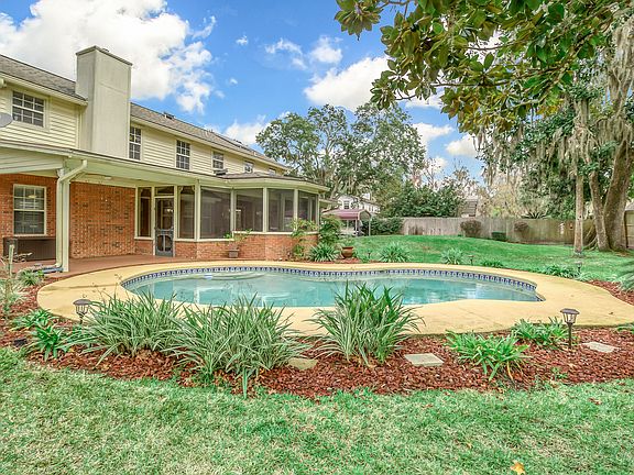 Imagine yourself entertaining friends and family outdoors playing in the saltwater pool or relaxing in the huge 400SF screen porch with cozy bench seating. The oversized fully landscaped lot has mature trees & an aluminum covered storage area for boats or other adult toys. 3 stunning custom glass Dream Doors lead you in the spacious home with gorgeous hickory wood hand-scraped floors that are throughout most of this custom built home. Kitchen has Corian counters, natural stone Travertine tile backsplash, undercabinet lighting and SS appliances including a Bosch DW. An old fashioned free standing fireplace with a handsome brick surround and hearth is the focal point in the large family room. Upstairs is a bonus living room in addition to the 5 bedrooms and 2 full baths. Solar water heater