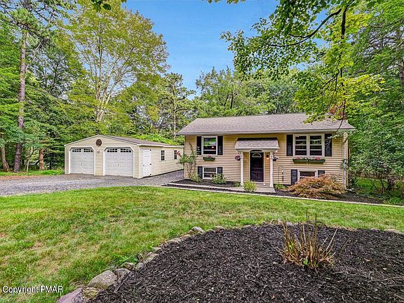 Peaceful Country Setting In The Heart Of The Poconos! Inviting & Move-In Ready Bi-Level Home Featuring 3 Bedrooms, 2 Full Baths, Detached 2 Car Garage & Lower Taxes Totaling $4,000/Year. Open Concept Kitchen & Dining Areas Showcase Granite Island w/ Bar Top Seating, Abundant Cabinetry, Tile Backsplash, Pantry & Glass Doors To Your Backyard Oasis. Main Level Highlights Sun-Filled Floor Plan, Living Room w/ Propane Fireplace & Expansive Primary Bedroom w/ Walk-In Closet. Well Maintained Both In & Out With Many Updates Including Newer Roof In 2021. Picturesque Tree-Lined Lot Situated In Jackson Townships' Pocono Mountain East School District Free Of Development Fees w/ Beautiful Flat Yard & Entertaining Patio w/ Lighted Canopy. Nature Surrounds This Tranquil 1 Acre Lot Awaiting Your Arrival!