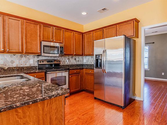 - Kitchen: Bar, Counter Tops-Granite, Pantry, Floors-Hardwood, Cabinets-Stained, Backsplash-Tiled, Recessed Lights