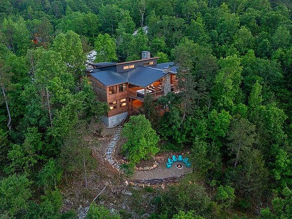 Downstairs, discover another haven of comfort in Bedroom #3, boasting a King-size bed and direct patio access. The Bunk Room features three double-stacked Queen-size bunk beds, arcade games, and a big-screen TV. The cabin also features a shared bathroom. Unwind in style in the downstairs living area, furnished with plush couches, accent chairs, and a big-screen TV. A private office space caters to those needing to catch up on work or plan their next adventure. Step outside to the downstairs balcony and find relaxation amidst nature with ample seating options and a gas fireplace. Nearby, gather around the firepit with seating for six. The main floor balcony beckons with its own array of comforts, including a gas fireplace, comfortable seating, a big-screen TV, private hot tub, and a gas grill, inviting you to savor the beauty of the outdoors in style. Forest View on the Creek is more than just a cabin—it's a sanctuary for an unforgettable escape!