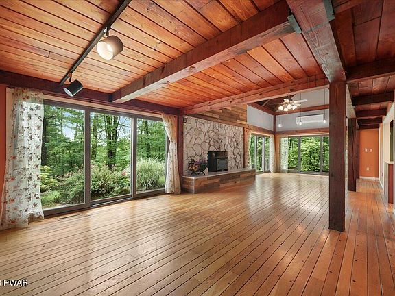 Highest and best offer due Tuesday 7/18 4pm. Fall in Love with this rustic, contemporary Post & Beam Dream Home w/ Vermont barn board siding & multiple bluestone patios. Ideal location on over two wooded acres only 2 miles from Milford Boro, with NO COMMUNITY! This custom crafted home features 4 Bedrooms, 3 1/2 Baths and an open floor plan showcased by dramatic cathedral ceilings and a grand floor to ceiling marble fireplace. Modern kitchen w/ S/S appliances and large Family Room w/ wood flooring and tons of natural light. Primary Bedroom Suite plus 3 more bedrooms and full bathroom upstairs. The full basement features a large Rec room, convenient full bathroom and multiple bonus rooms for storage or hobbies. Whole House Generator and brand new roof in 2022,, Beds Description: Primary1st, Beds Description: 2+BED 2nd, Baths: 1 Bath Level 1, Baths: 1/2 Bath Lev L, Baths: 2 Bath Lev 2, Eating Area: Dining Area, Eating Area: Modern KT, Beds Description: 1Bed1st