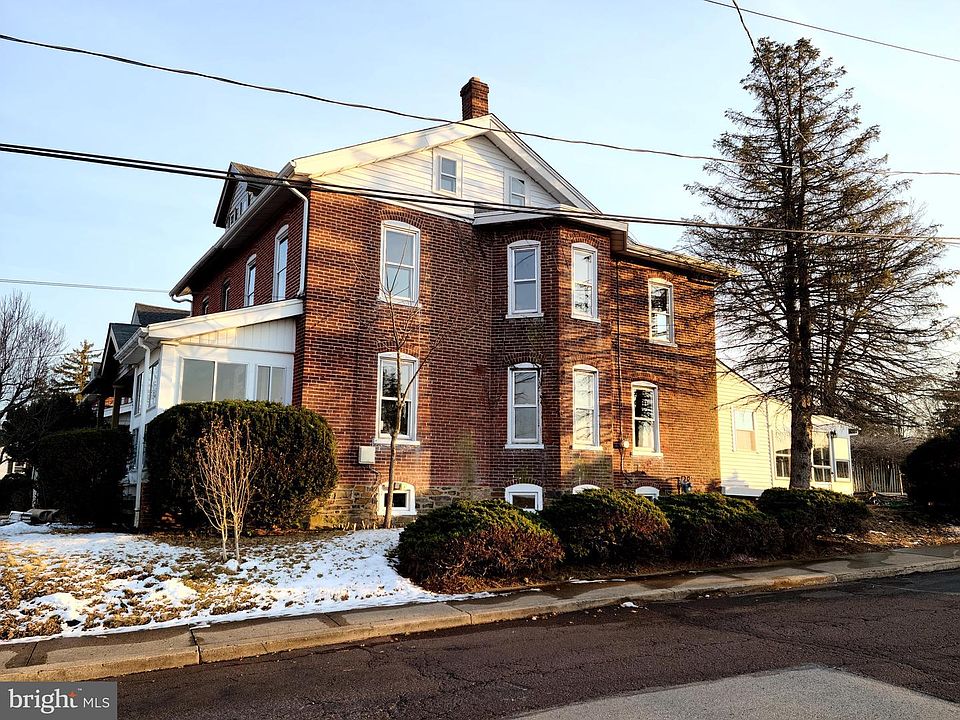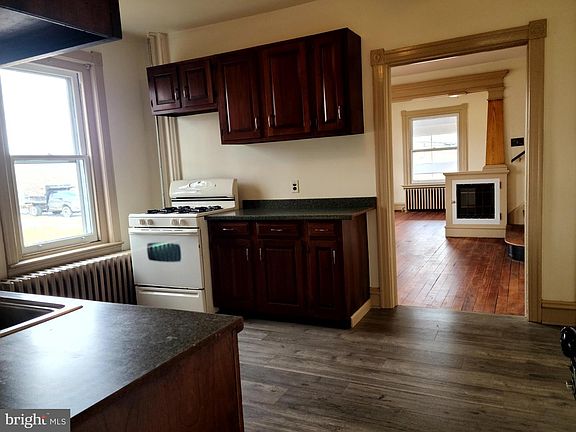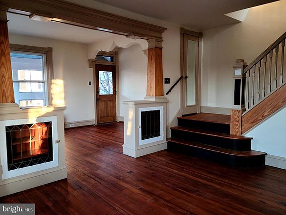 Corner Brick Twin offers beautiful refinished wood floors on 1st fl new carpets on 2nd fl. kitchen with cherry cabinets and access powder rm, 3rd BR without a closet atm the walk up 3rd fl has been used as closet and storage area, full basement with outside exit, enclosed rear porch looks over back yard and cemetery across the street. Enjoy the church bells played daily. Listing agent is also owner. Repairs and improvements are still to be done call for details.