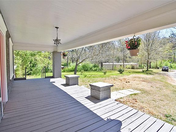 Farmhouse chic on 1.68 acres w/charming rocking chair front porch. New metal roof, total electric HVAC system, electrical panel, updated plumbing, new windows & doors. New engineered woods floors, freshly painted inside & out. Kitchen w/shaker cabinets, granite, tile backsplash & updated SS appliances. Bathroom w/custom ceramic tile, large walk-in stepless tile shower, oversized farmhouse vanity w/raised sink. Bedrooms have new carpet, closet systems & ceiling fans. Well w/new well pump. Large metal buildings sold as is ideal for storage, mechanic or wood worker.