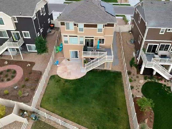 Beautiful mountain & city views in Erie Highlands. This move-in ready Granby model has Panoramic views on a spacious lot, backing up to open space. Tons of upgrades incl. 5 ??' baseboards, maple hardwood floors, lighting, fixtures & Hunter Douglas rolling window treatments. Gourmet kitchen incl. granite counters, tile back splash, SS appliances + large island. Master suite w/ sitting area, 4-piece bath & walk in closet. Walk-out finished basement (2018) w/ huge media room, storage, private bedroom & ?? bath & Lifeproof vinyl flooring. Upstairs 10x20' vinyl deck & covered 10x20' patio w/ stone patio. Energy efficient Smart home incl. Tesla solar panels, Nest thermostats & doorbell. Why buy new when you can have it all without the build time?!
