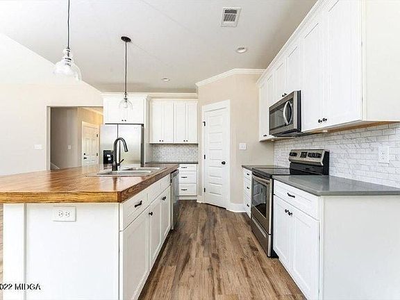 Impressive waterfront home under construction in Healy Plantation, featuring 5 bedrooms, 4 baths. The chef's delight kitchen features soft close cabinets, stainless steel appliances, walk in pantry with custom wood shelving, amazing entertaining island overlooking the great room with gas log fireplace, Luxury Vinyl Plank flooring in the main level living areas. The private owner's suite features spa bath, a relaxing walk in tile shower and deep soaking tub, plus spacious walk in closet. Also on the main level is a mini suite with full bath upstairs is the ensuite plus 2 more bedrooms. Too many amenities to list. Enjoyment is fulfilled on the extended covered rear patio, landscaped yard with sprinkler system. Under Construction! Photos are of a ''similar to'' 262 Lakeview Drive