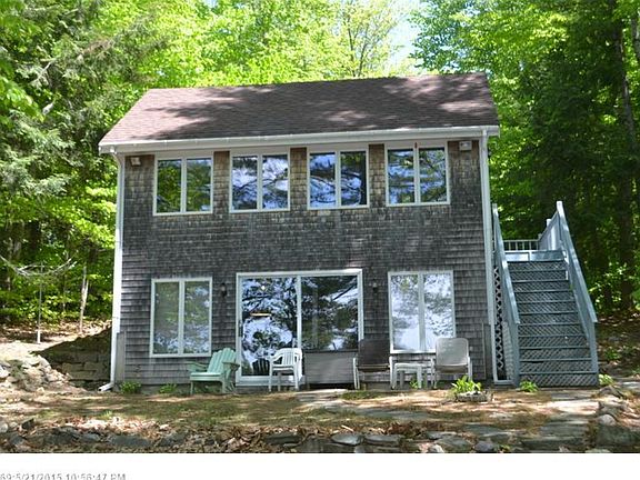 Year round home with 50' on mighty above average water quality Sebago Lake. Home features views lake side of the scenic Dingley Islands. 3 bedrooms 1.5 baths, daylight walkout unfinished basement, garage on separate lot across the street. Ready to enjoy summer, fall, winter and spring. Septic approved for 4 bedrooms.