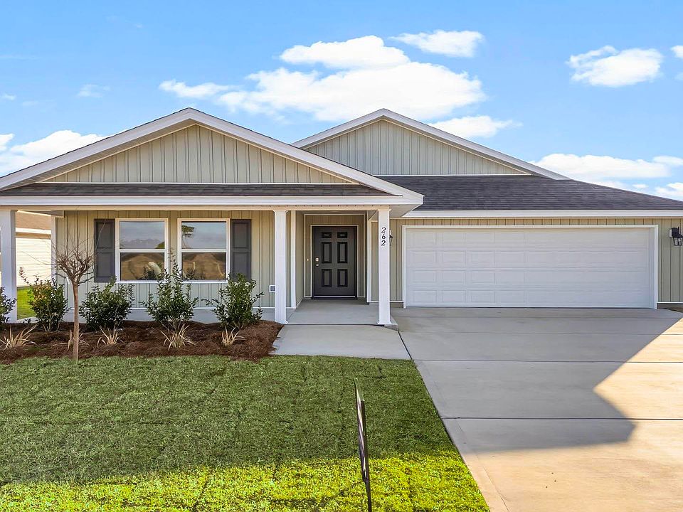 Park Place in Callaway is our closest new construction to Tyndall Air Force Base! This Lakeside floor plan is located on Lot 43 at 262 Lawton Branch Way. As you enter the Lakeside floorplan you will notice immediately the brightness of the entry hallway. is 5-bedroom 3 bath, 2012 square foot home is an open floorplan with two bedrooms separated by a full bathroom just off the front hallway and two additional bedrooms and a shared bath off the opening living area. The spacious primary bedroom leads to the bathroom featuring a large shower, double vanity, and a large closet. This home is perfect for entertaining or a large family as the living space is open and features a dining area, a kitchen with center island. Interior features of this home include beautiful Engineered Vinyl Plank flooring, cabinetry that is bright with Ivory tone, and quartz countertops. The bedrooms feature plush carpet. The exterior of these homes includes vinyl siding and fully sodded yards with flower bed at the front entry. Park Place is conveniently located close to shopping, recreational parks, schools, and is only a few minutes to Tyndall Air Force Base.